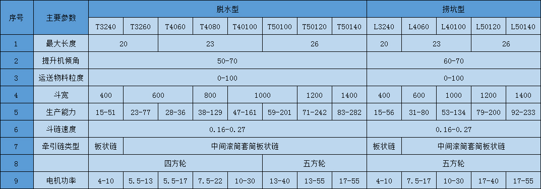 4、具有規格多、輸送量大、提升高度高、運行平穩、壽命長、環境污染少。